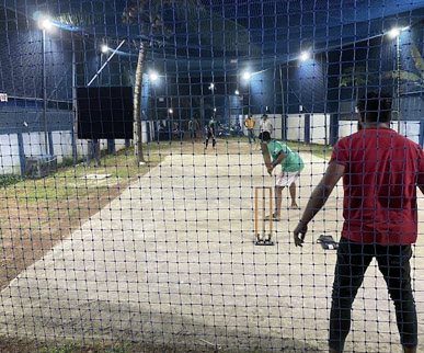 Our modern facilities include a versatile box cricket setup that converts into twin net practice pitches, available for hourly individual or group bookings for match play and focused practice.